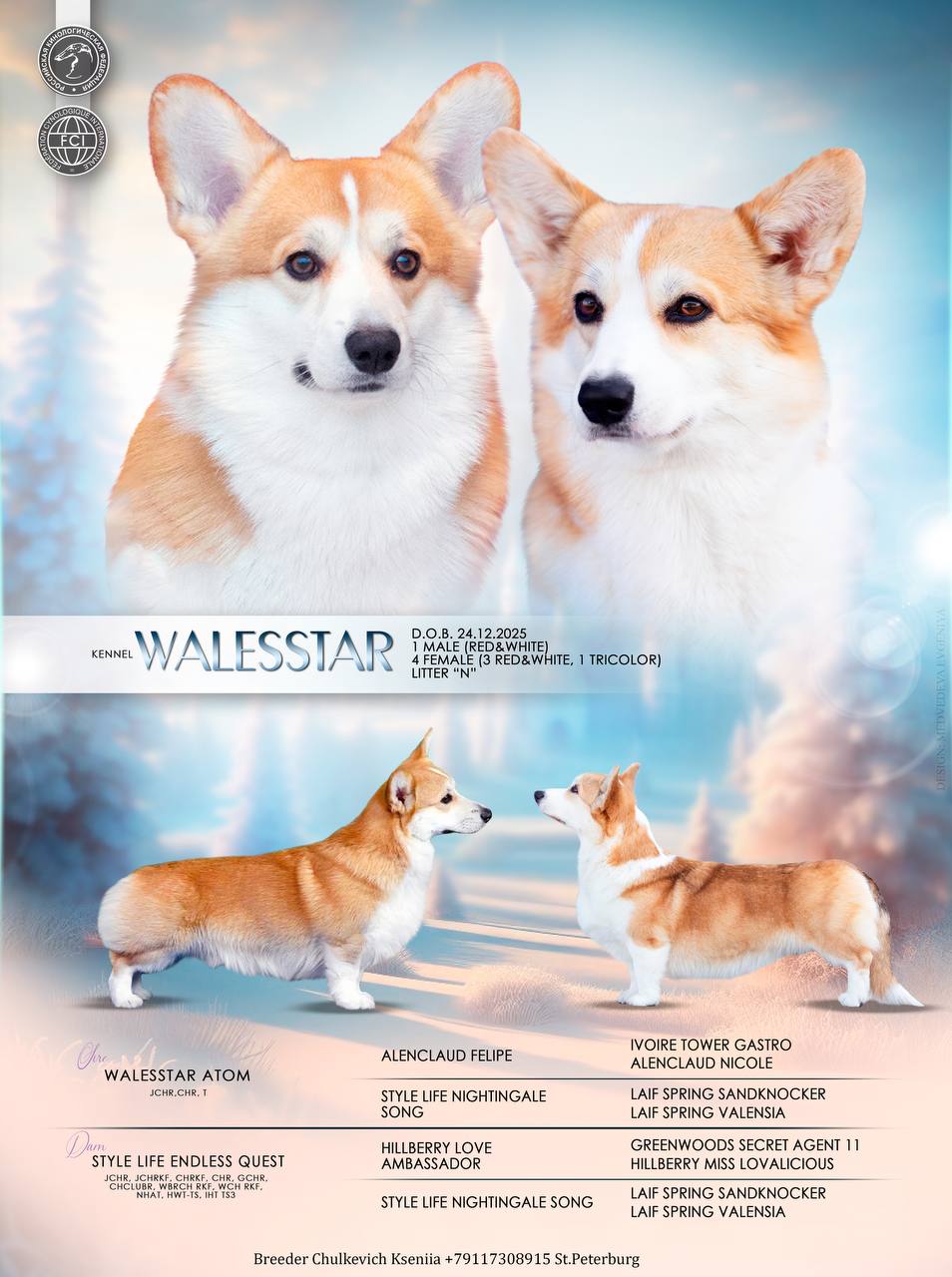 Монопородный питомник Валесстар предлагает щенков породы Вельш Корги Пемброк. Дата рождения 24.12.25.